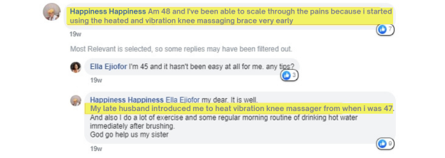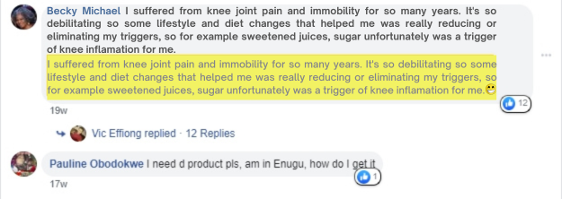 “I was ready to replace both knees. Pain was so bad I could hardly think straight. 1 week of using RevitaKnee and I slept through the night for the first time in years. Still got ways to go, but after trying everything and failing before, it’s nice to know things are turning around.” – Ronke Adekunle, Lekki Lagos ★★★★★